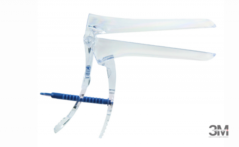 Зеркало гинекологическое полимерное по Куско одноразового использования стерильное. Створки зеркала фиксируются поворотным или винтовым фиксатором.